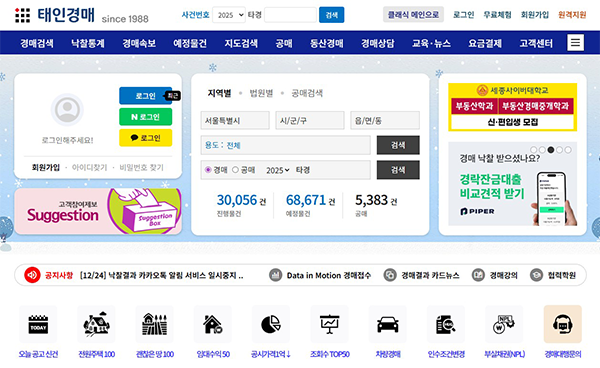본 사이트에 가입하신 회원분들께 "태인 경매" 유료경매사이트 2개월 무료이용권을 제공합니다.