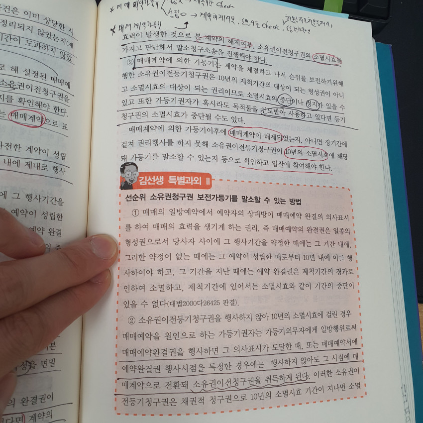매매예약의 경우, 매매예약완결권이 성립X - > 제척기간가지고말소, 성립되었다면 계약효력발생한것이므로 본계약의 해제여부, 소유권이전청구권의 소멸시효를 판단 하라고 하셨는데..