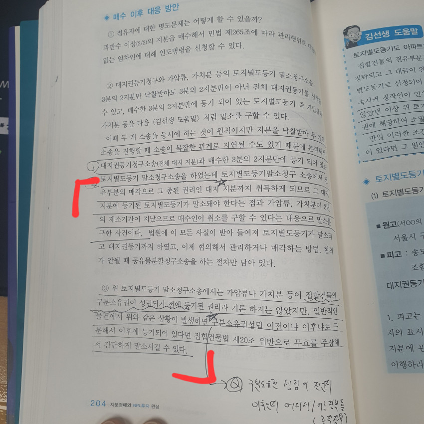교재에서 맨밑에 동그라미3번에서 구분소유권 성립이전이냐 이후냐에 따라서 토지별도등기를 말소할수있다고하셨는데